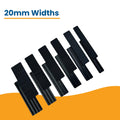 Match the width to your sealed glass unit thickness, not the frame rebate. For standard double glazing use 22mm-26mm. For triple glazing use 32mm. When in doubt, measure the glass unit itself.
