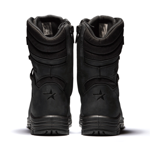 Steel-toe protection with slip-resistant soles. Designed for construction sites, featuring composite materials for lighter weight without compromising safety.