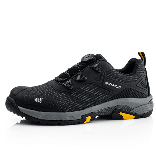 Steel-toe protection with slip-resistant soles. Designed for construction sites, featuring composite materials for lighter weight without compromising safety.