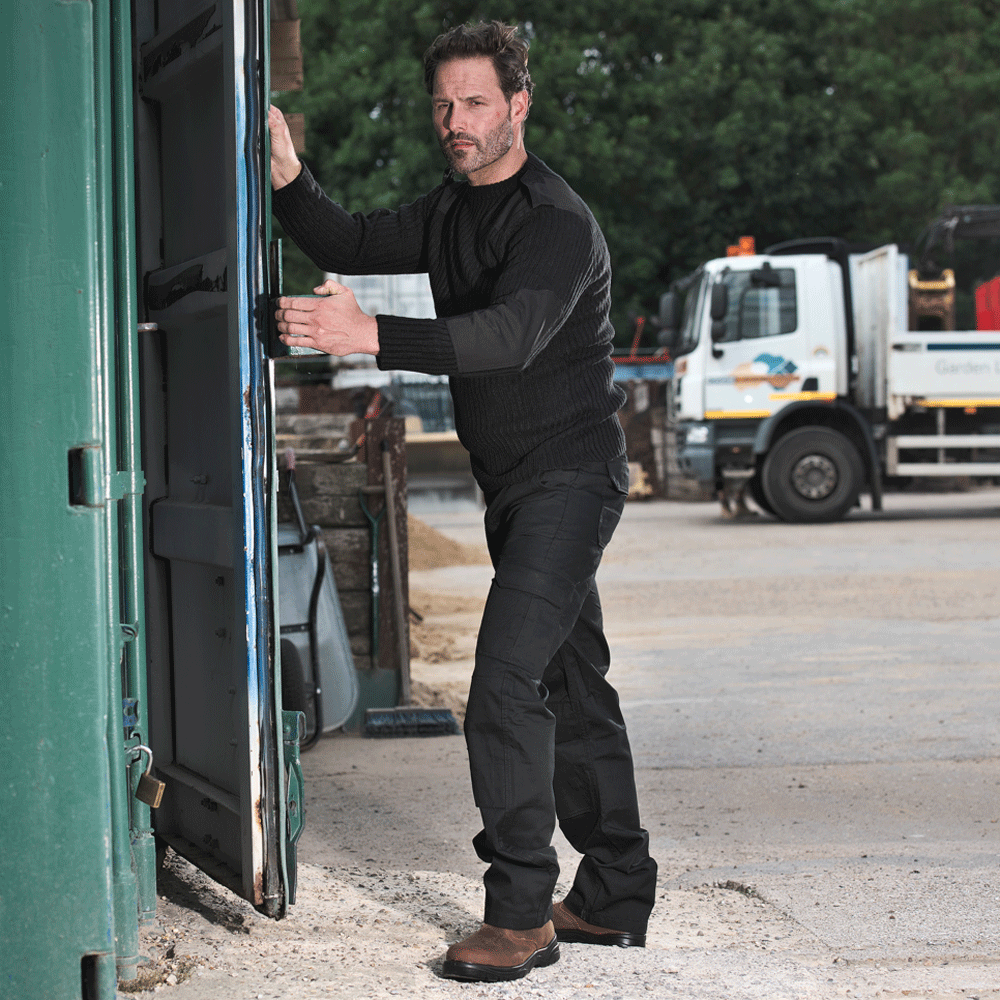 The military hints – epaulettes, elbow and shoulder patches – give this jumper its air of authority. This is the heavyweight uniform sweater for a team that exudes a reassuring confidence. Ideal for technicians, stewards, drivers, and security staff. It the badge of leadership and trust they deserve.