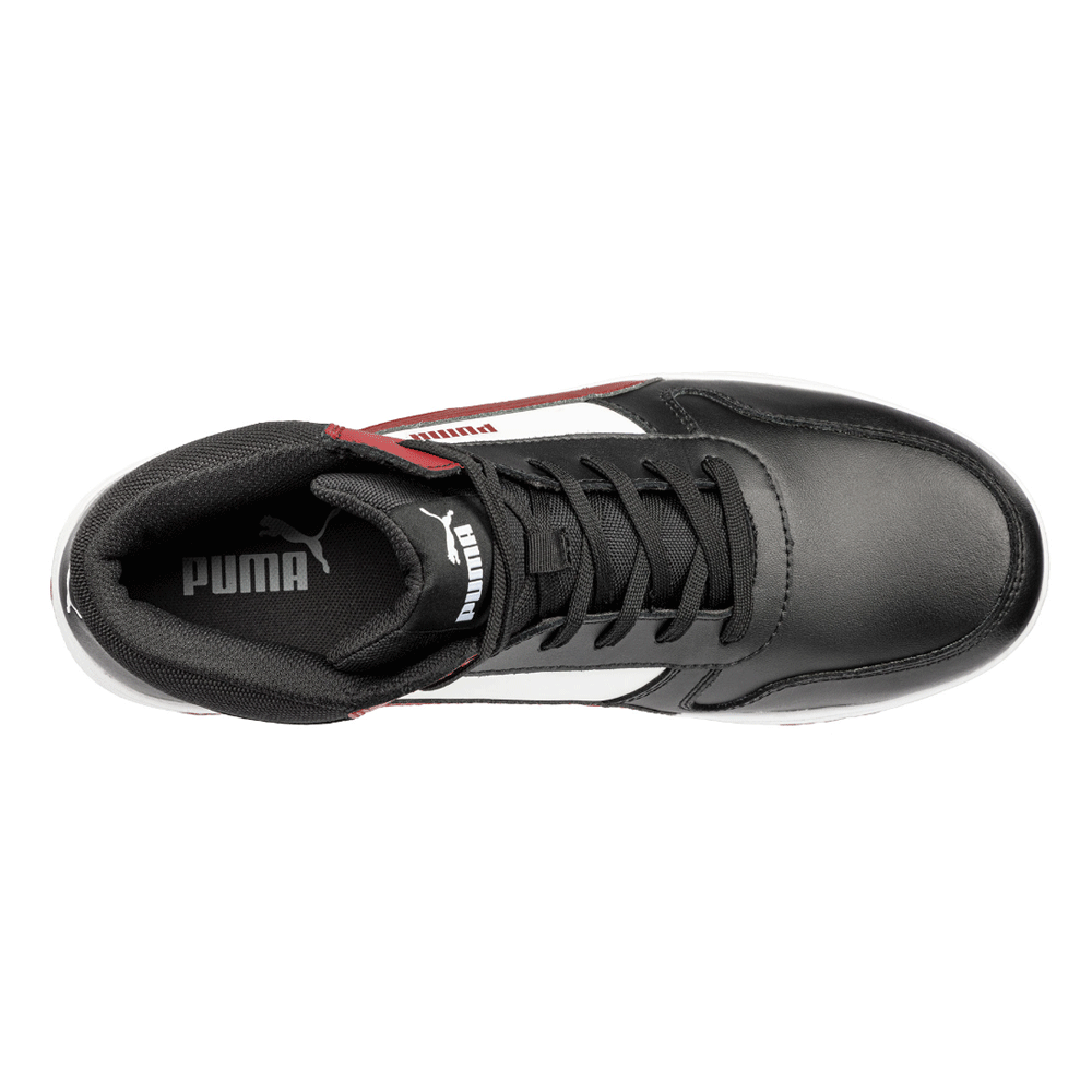 This is really a safety shoe? Of course it is! The new FRONTCOURT from PUMA Safety, inspired by classic sports shoes, not only looks good, but also shines with its sophisticated features! The S3 safety shoe with fibreglass toe cap and flexible penetration protection comes with a non-slip and up to 300°C heat-resistant outsole, which convinces with optimal grip and perfect cushioning. A rotation point incorporated into the sole in the midfoot area minimises friction and fatigue. The Evercushion® RELIEF footbed provides optimal pressure relief and a natural position of the foot in the shoe thanks to the special arch support. Shock-absorbing elements in the heel and forefoot area absorb shocks and impacts when the foot touches down and make the FRONTCOURTmaximally comfortable - even on long working days.