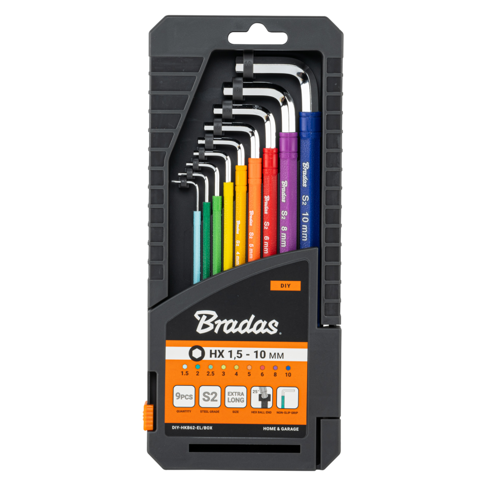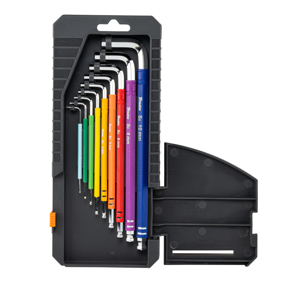 This 9-piece Ball-End Allen Key Set is a must-have for both DIY enthusiasts and professionals. Designed for precision and convenience, the set includes keys ranging from 1.5 mm to 10 mm, making it suitable for a wide variety of tasks. Its ball-end design allows users to work at angles of up to 25°, providing added flexibility in hard-to-reach areas.