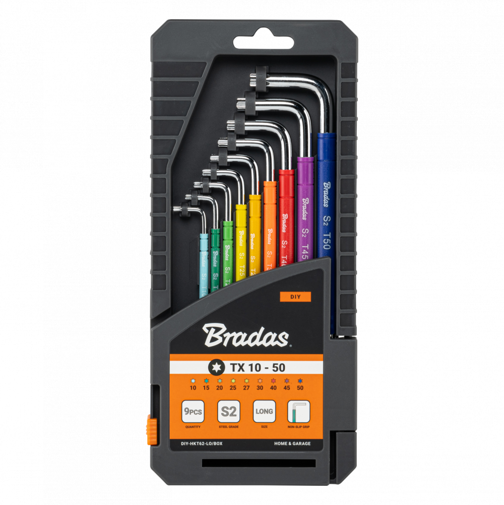 The TORX TX 10–50 wrench set is a 9-piece essential for both DIY enthusiasts and professionals. Designed with long keys, this set provides good reach and torque, making it ideal for a wide range of tasks. Each key is made from durable S2 steel, ensuring long-lasting performance and strength.