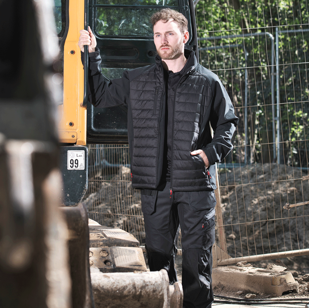 A hybrid jacket for a tradesman who knows what he wants: practicality and flexibility. The core panels, with their rip-stop outer and ThermoFort lining, keep you warm; the softshell shoulders and sleeves provide freedom of movement. If you have to work in all weathers, so does your jacket.