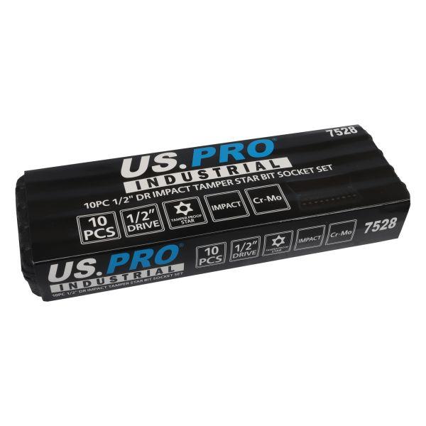 US PRO Industrial 10pc 1/2" DR Impact Tamper Star Torx Bit Socket Set T30 - T100 7528