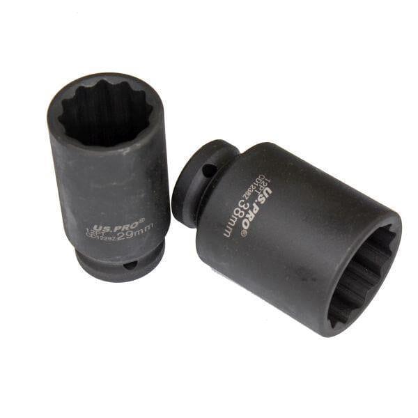 US PRO Tools 9pc 1/2" Dr 12pt Deep Impact Hub Nut Sockets 29mm to 38mm 3688
