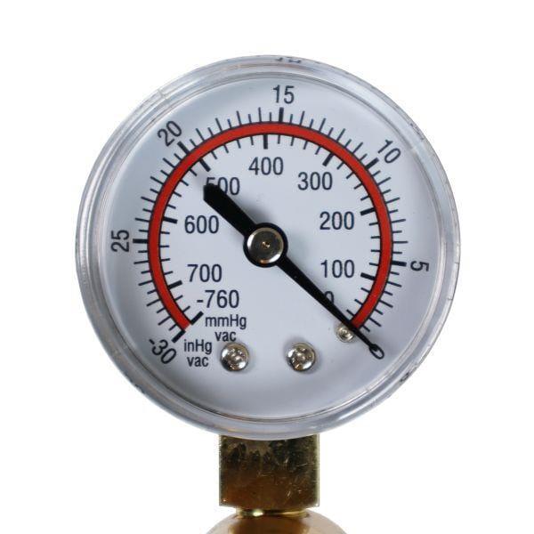 The gauge provides accurate readings from 0 to -30 inHg (0 to -760mmHg), enabling precise evaluations.