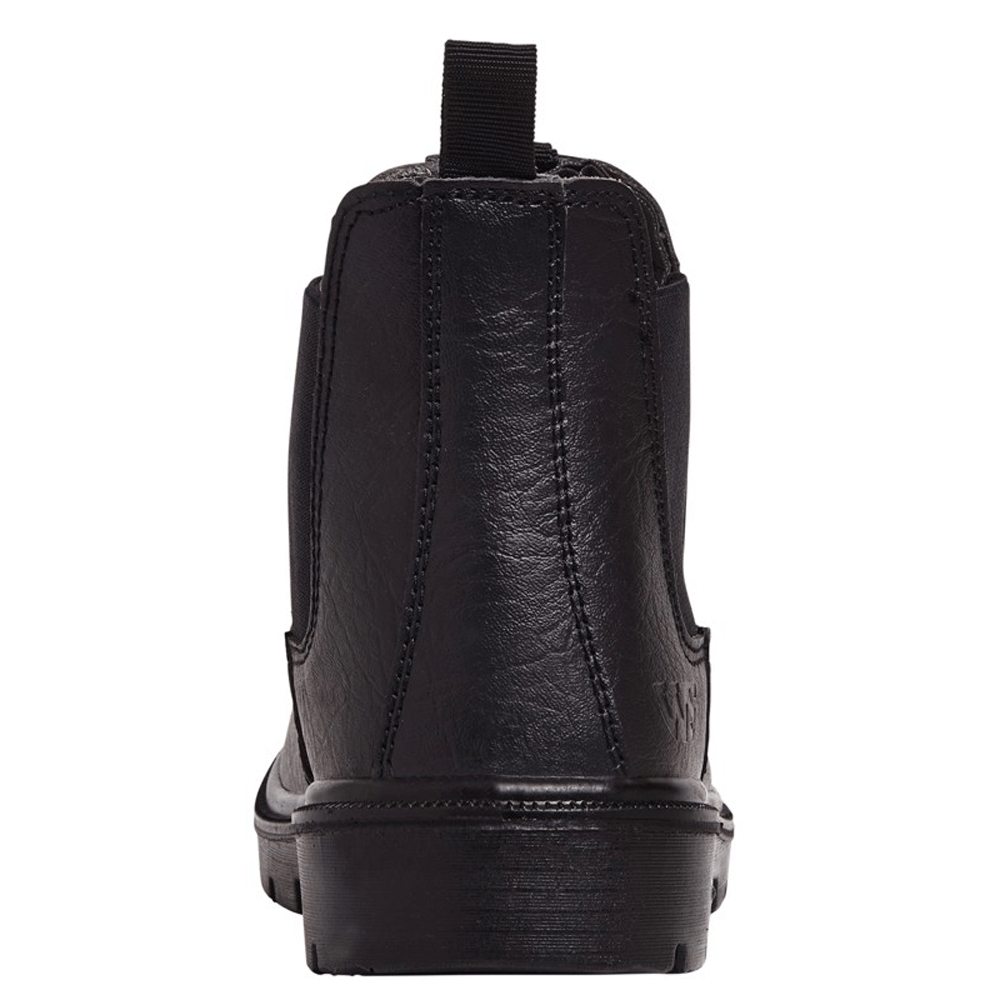 Black buffalo grain leather dealer boot. Steel toe cap and steel midsole protection. Woven pull loops and elasticated sides. Dual density polyurethane outsole. Anti-static. Ideal for many applications where footwear needs to be removed easy.